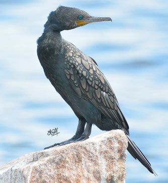 Descripción. Suliforme de tamaño medio que alcanza un tamaño próximo a los 60-65 cm. Presenta un color negro con un pico largo terminado en gancho, la cabeza redondeada y unos ojos azules verdosos. Los individuos jóvenes presentan un color pardo con las partes inferiores blancas.