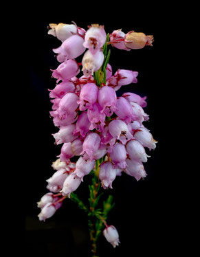 Descripción. Arbusto erecto, densamente ramificado, que alcanza una altura comprendida entre 60 y 80 cm. Las hojas se disponen en verticilos de tres, son erectas y, en la mayoría de los casos, presentan una disposición dística. Las inflorescencias se agrupan en racimos terminales compactos, con flores de morfología campanulada e invertida, de coloración rosa púrpura.