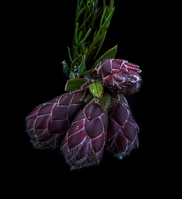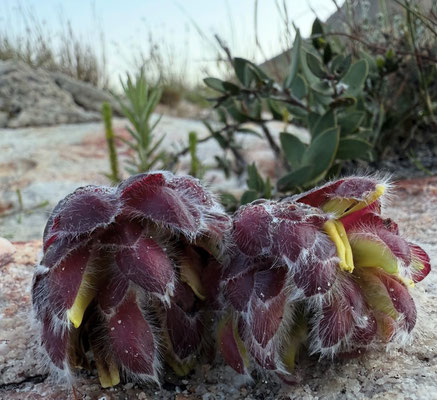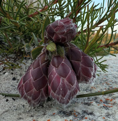 Curiosidades. La polinización de esta especie es realizada por mamíferos no voladores, un fenómeno poco común dentro de la flora del fynbos. Se encuentra catalogada como Vulnerable (VU) en la Lista Roja de Plantas Sudafricanas, debido a la extrema fragmentación de sus poblaciones naturales (estimadas en menos de 1000 individuos), así como por las amenazas derivadas del desarrollo urbano en la región de Ciudad del Cabo y la expansión de especies exóticas invasoras.
